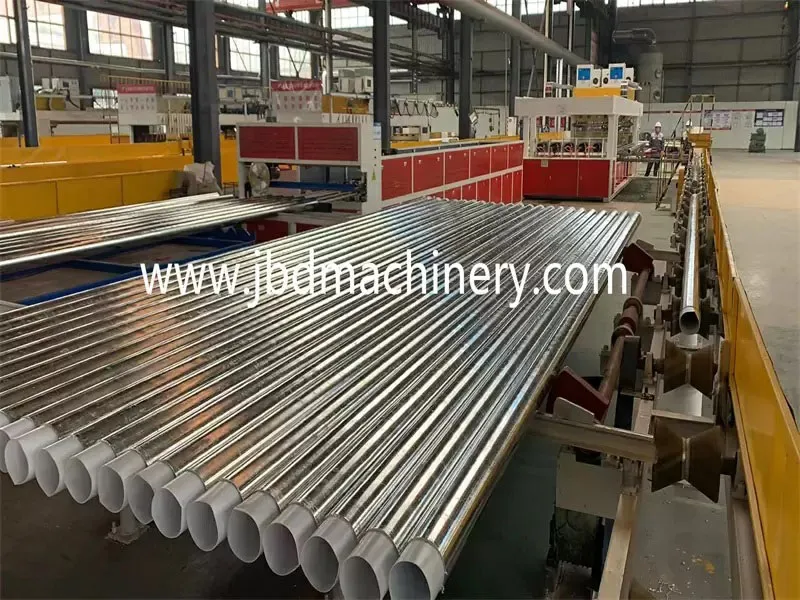 Экструдер --- Фильера --- Водяная охлаждающая ванна --- Тянущее устройство --- Высокоскоростной сервоприводной резак --- Тянущее устройство для стальных труб --- Аппарат быстрого нагрева и быстрого охлаждения --- Установка торцевых заглушек --- Контроль и готовая продукция