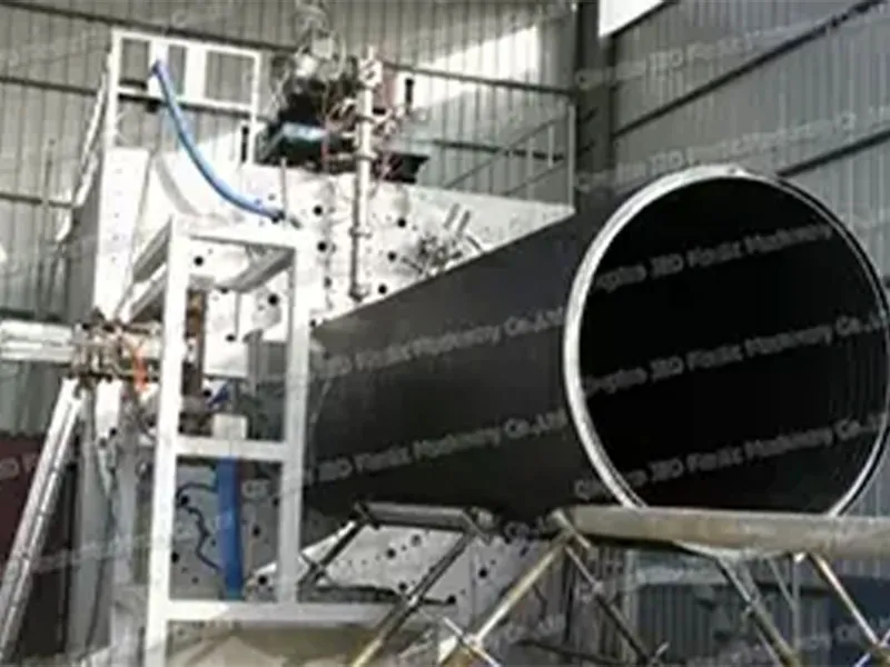 Данная производственная линия для спирально-навитых труб из ПЭВП большого диаметра с полыми стенками использует передовую систему компьютерного управления на базе ПЛК, высокоэффективные шнеки и композитные фильеры. Полный комплект оборудования включает экструдер для труб, коэкструдер, станок для спиральной навивки, режущий станок и соответствующее вспомогательное оборудование. Линия обладает характеристиками высокой производительности, эффективности и стабильной работы, а готовые трубы отличаются высокой жесткостью, хорошей устойчивостью к ползучести, удобством соединения, экономичностью и практичностью.